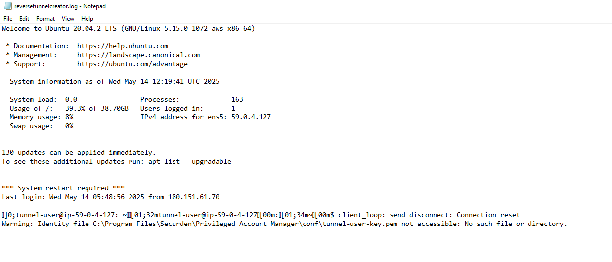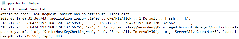 While reviewing application logs produced by Securden’s Unified PAM (version 11.2.5), Rapid7 discovered an entry indicating that the application server had established a reverse SSH tunnel to a remote server, using a key placed on disk, exposing the login page for Rapid7’s local Unified PAM used for testing: