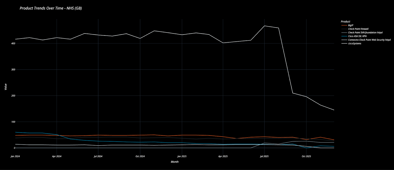 The exposure of 30+ DICOM systems is concerning. But it is not isolated. A broader review of UK healthcare-associated IP space shows externally visible infrastructure including: